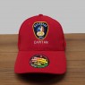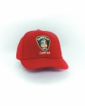Gorro Capitan Prodry sport ajustable color rojo con logo institucional bordado full color y frase Capitan en frente, atras bordado palabra Bomberos.
